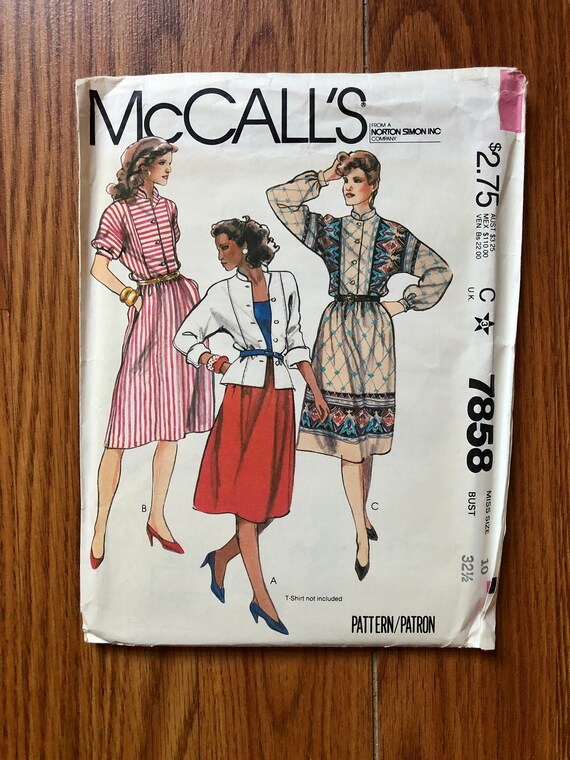 Vintage Mccalls Pattern No 7521 80 S Sewing Pattern 80s Mccalls Pattern No 7521 Buttoned Pullover Dress With Elastic In Waistline Casing Has Faced Yoke With Forward Shoulder Seams Optional Patch Pockets Semi Circular